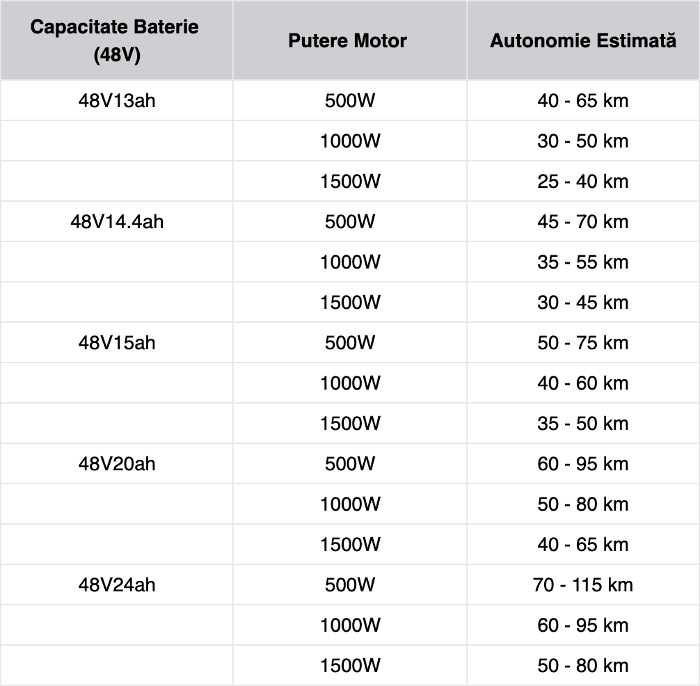 Autonomiile menționate sunt estimative și performanța reală poate varia în funcție de mai mulți factori, inclusiv: